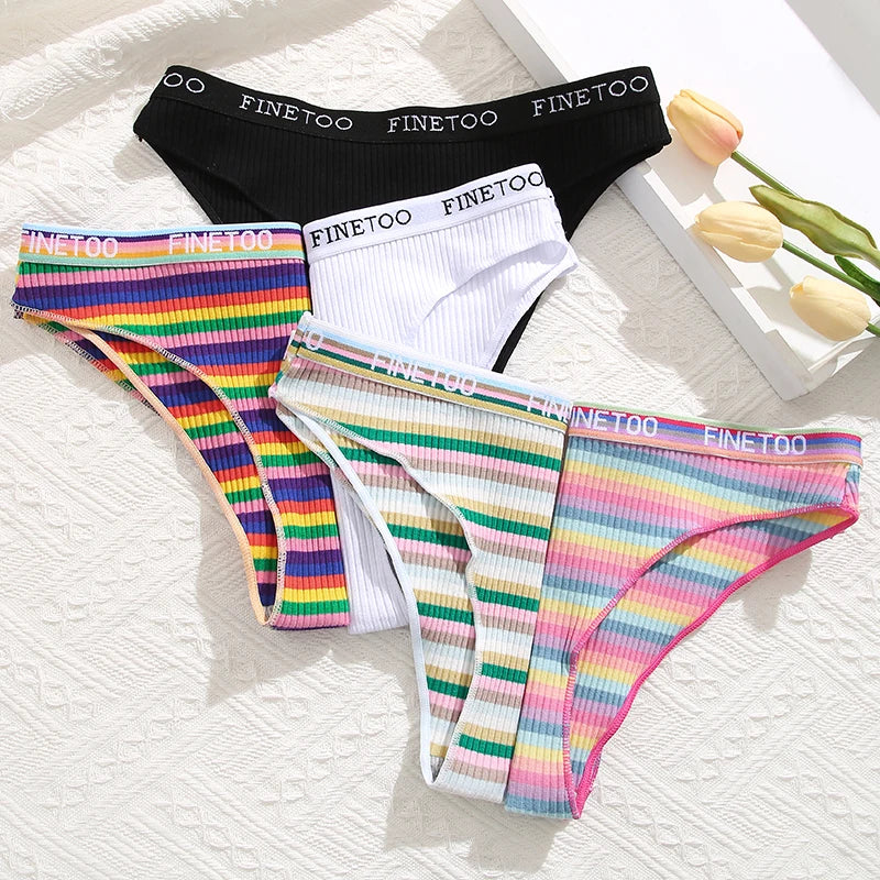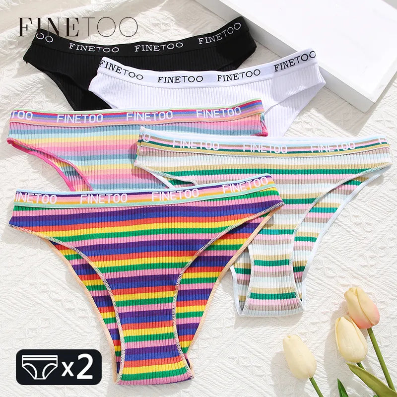 Item:FINETOO Cotton Striped Panties Women Low-Rise Underwear 2Pcs/set Comfortable Briefs Ladies Soft Underpants Female Intimates S-XL