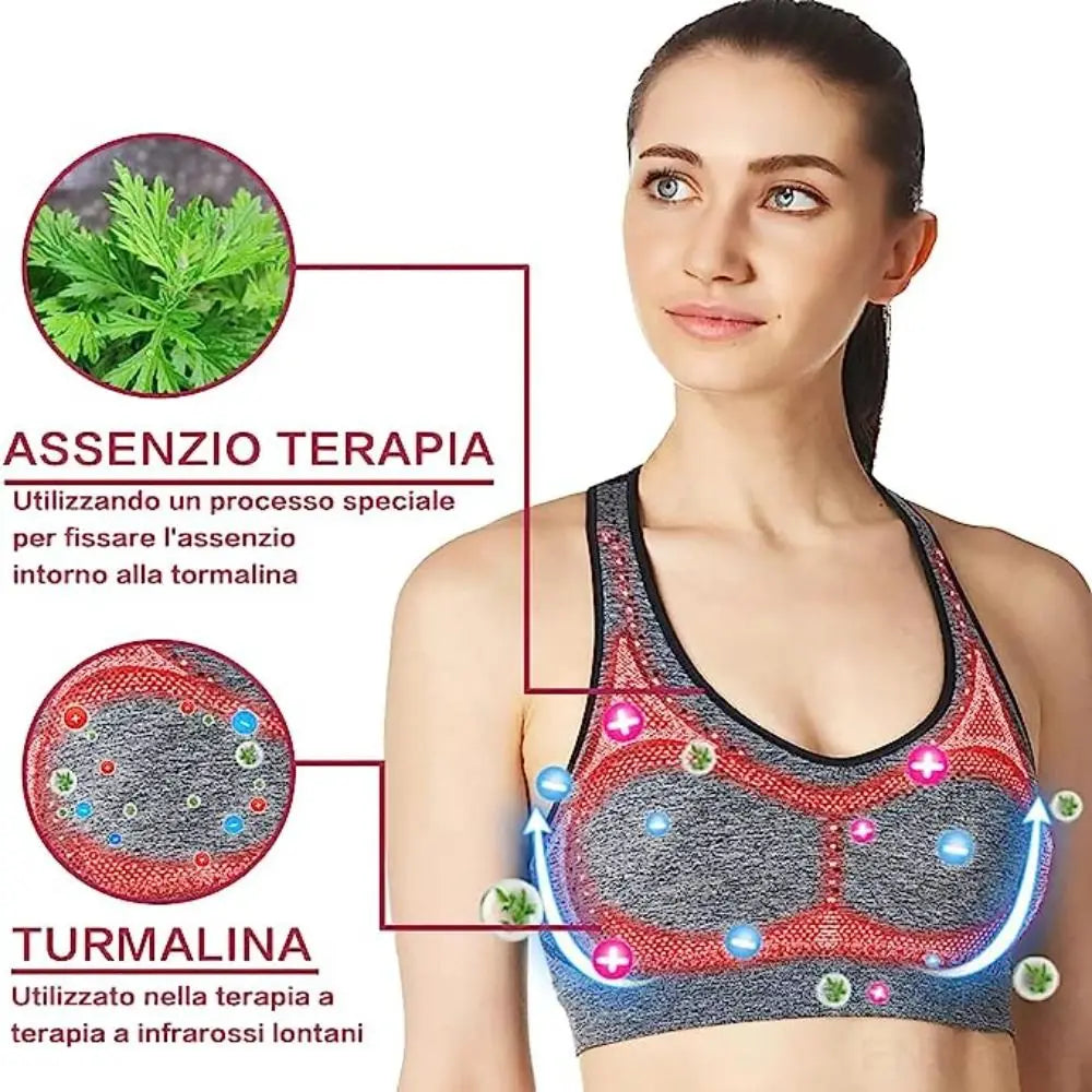 1.Support Sports Bra: Ion Lifting & Lymphvity Detoxification Bra. Wide elastic back straps and hem provide support for your bust, the best choice for low-impact sports and daily wear, keep your bust free.