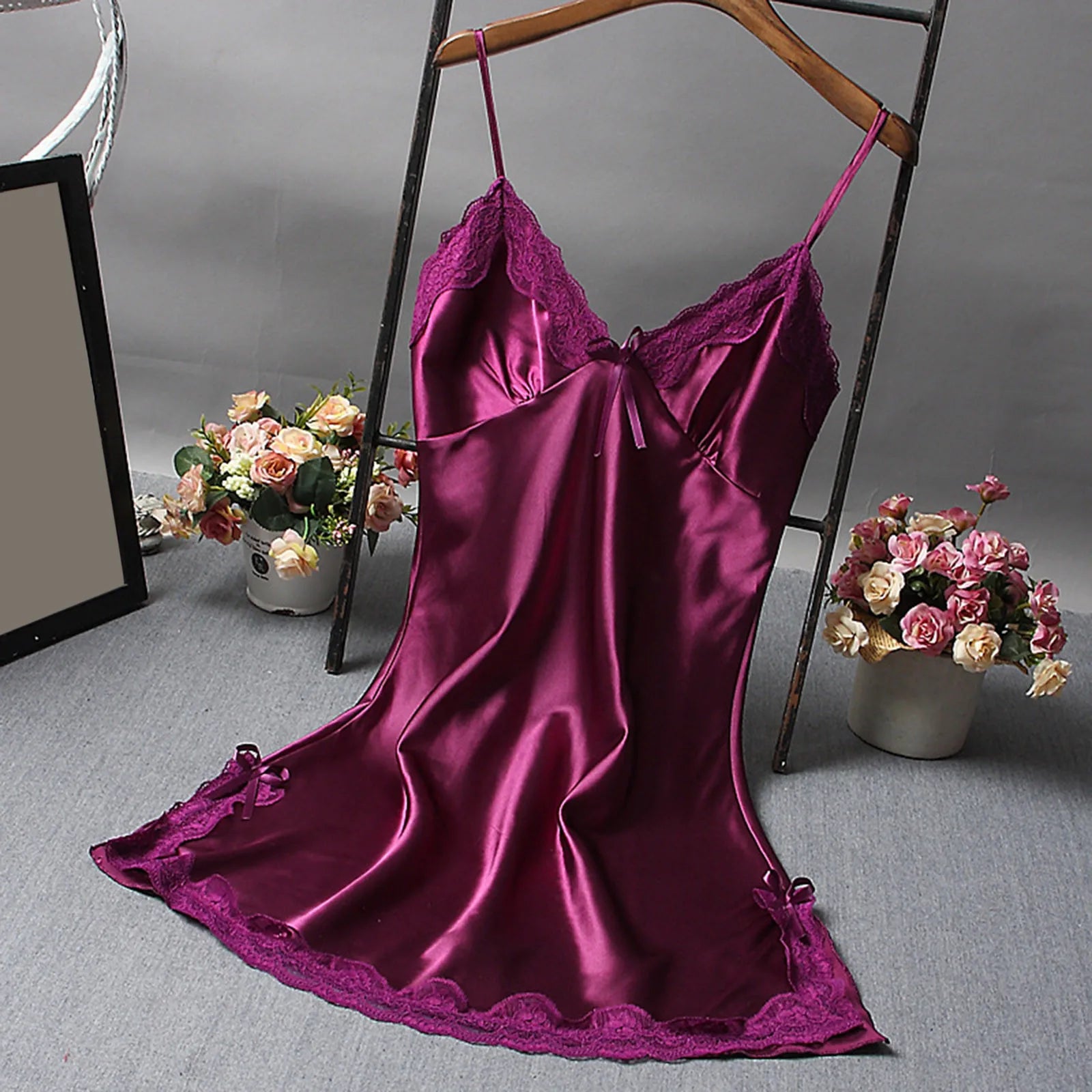 NIGHTGOWN - Made of Polyester, lingerie nightgown is soft, silky and stretchy. Silk Sleepdress is smooth, lightweight and comfortable enough to wear for night.