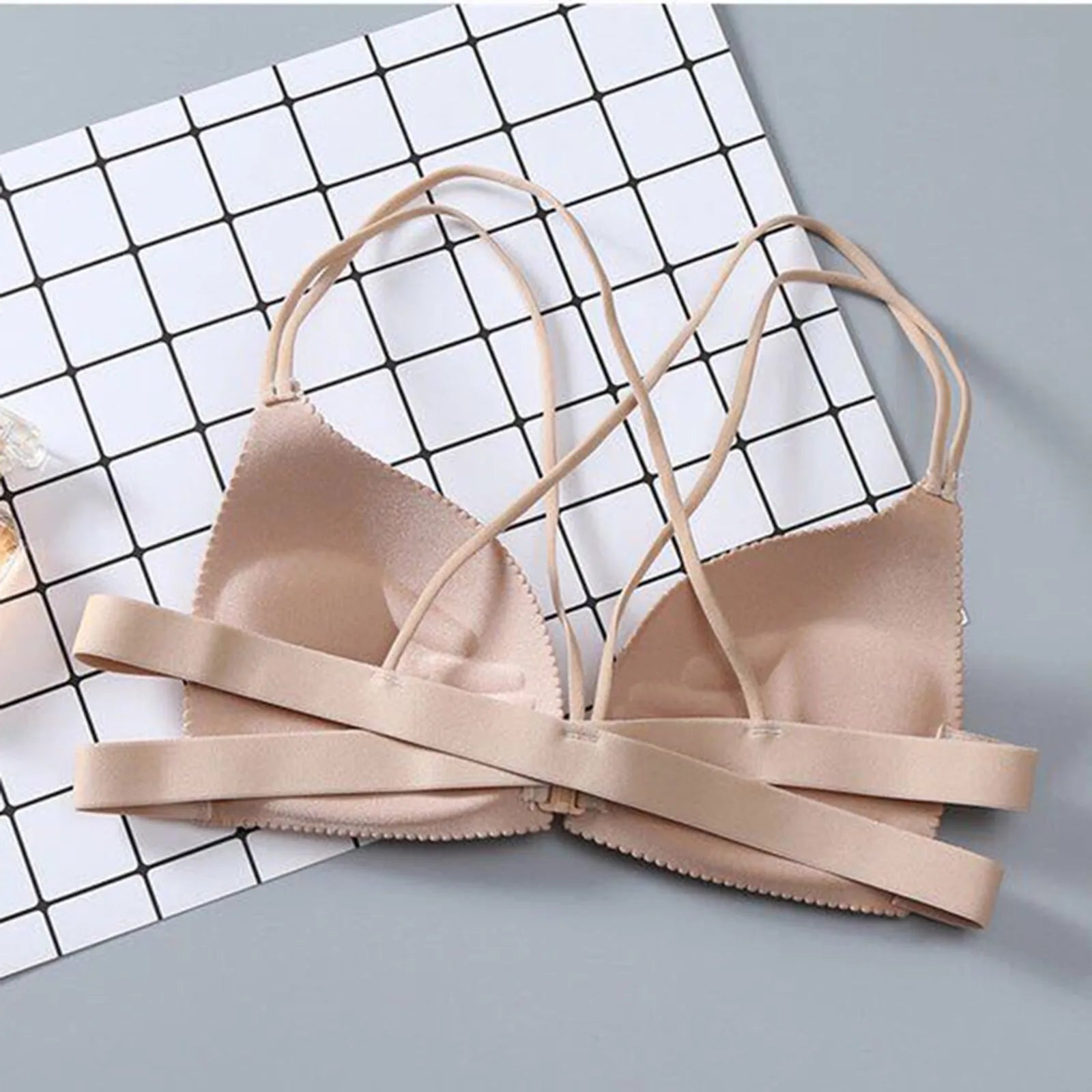 Women's Comfortable Side Breasts Gathering Beautiful Back Bra Front Buckle Back No Steel Ring Triangular Cup Underwear